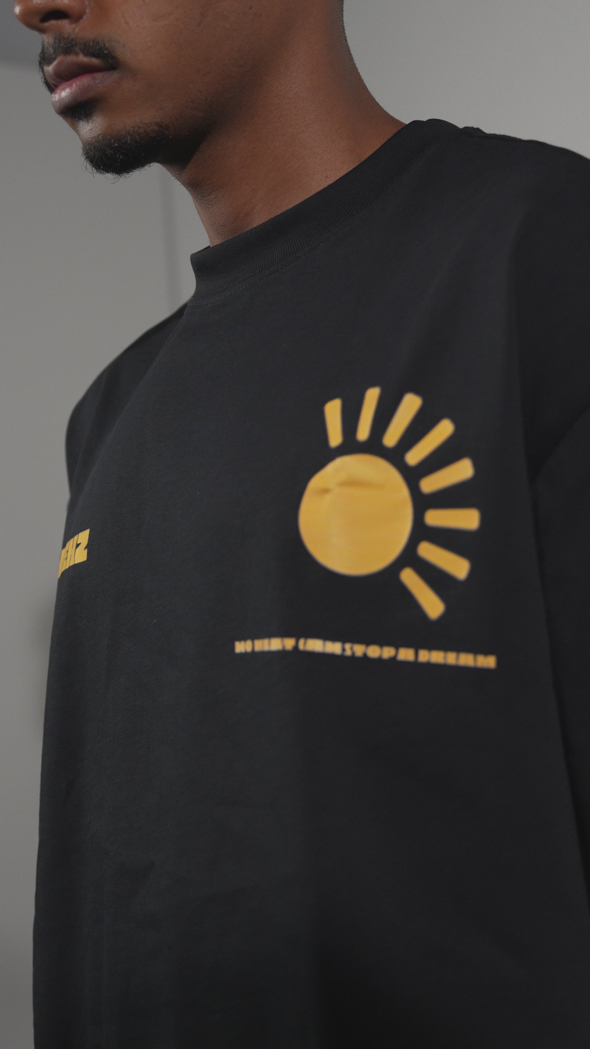 تيشير مميز من سليكز يتكوّن من تيشيرت بُوكس-فت مُزينين بشعار الشمس المميز وعبارة “لا حرارة توقف الحلم”. مصنوع من قطن عالي الجودة بوزن 230 جرام يمنحك راحة وتهوية مثالية، مع قصة عصرية واسعة تناسب إطلالات الشارع الجريئة واليومية.